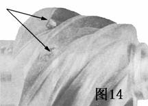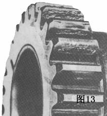 圖18是齒輪的典型疲勞缺陷,其特點是有光滑的地方.它是由重的載荷或震動載荷(不正確的換檔和操縱離合器)造成的。