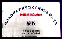 為積極推進(jìn)我省商標(biāo)戰(zhàn)略的實(shí)施,增強(qiáng)企業(yè)品牌意識(shí),增強(qiáng)陜西產(chǎn)品的市場(chǎng)競(jìng)爭(zhēng)力,根據(jù)《陜西省著名商標(biāo)認(rèn)定與管理暫行規(guī)定》的規(guī)定,經(jīng)研究,陜西省工商行政管理局認(rèn)定陜西毅政農(nóng)業(yè)機(jī)械有限公司的注冊(cè)商標(biāo)毅政為陜西省著名商標(biāo)。